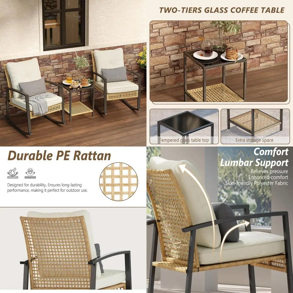 Outdoor Chair Cushions Set of 3, Waterproof 24x24 Patio Chair Cushion, 6" Thickened Seat Cushion for Outdoor Furniture