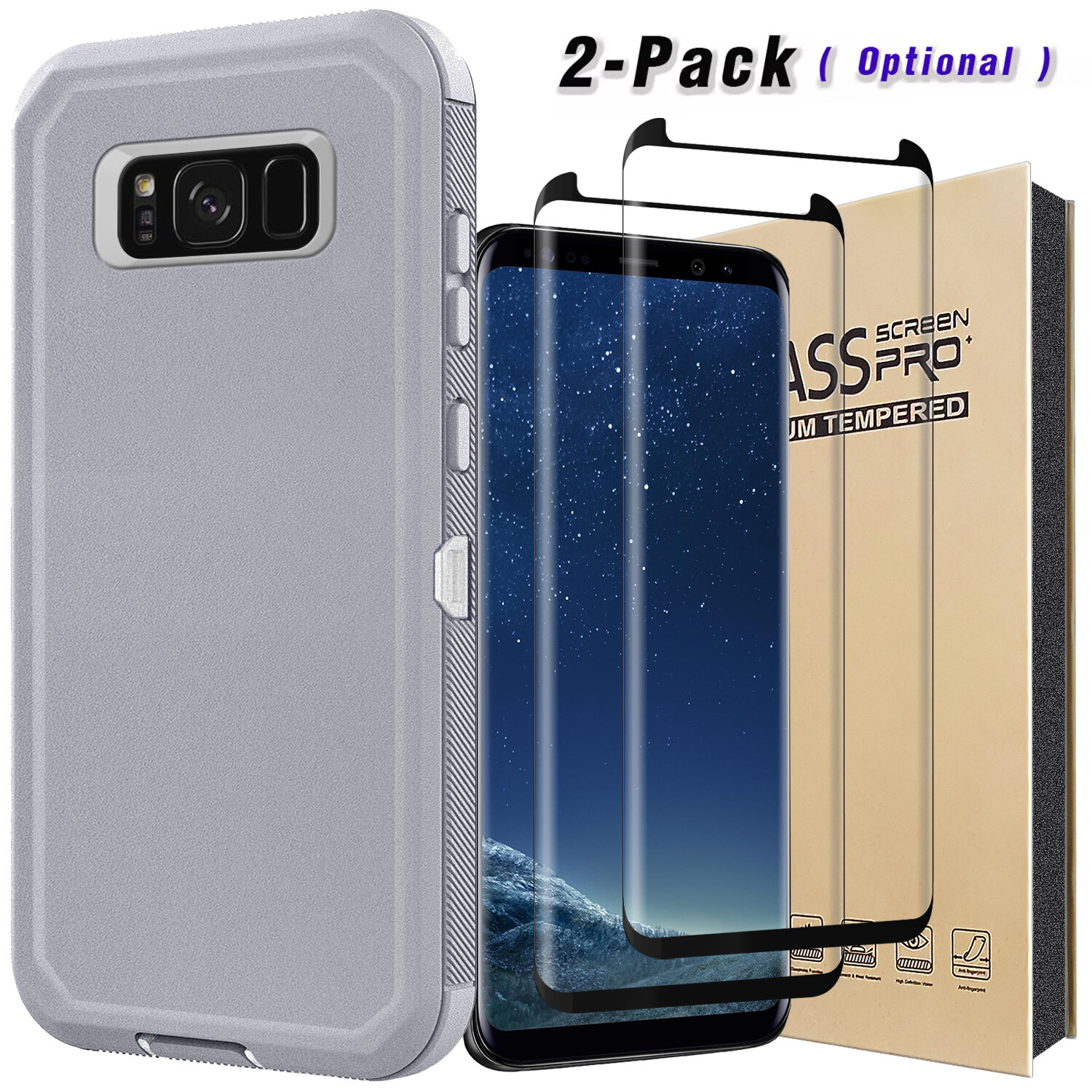 For Samsung Galaxy S8. For Samsung Galaxy S8+. -Design: 3 pieces combo,No built in screen protector. -Hybrid combo design,PC inner layer and outer TPU layer. Case+2x Glass Screen Protector=. 2 x Tempered Glass Screen Protectors.