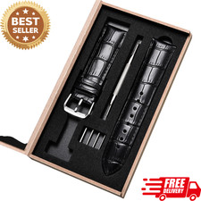 Boxed Quality Genuine Leather Watch Band Crocodile Grain Pin Buckle Strap18-24mm