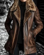 Genuine Real sheepskin Long leather mouton Sheep Lomg Coat vintage