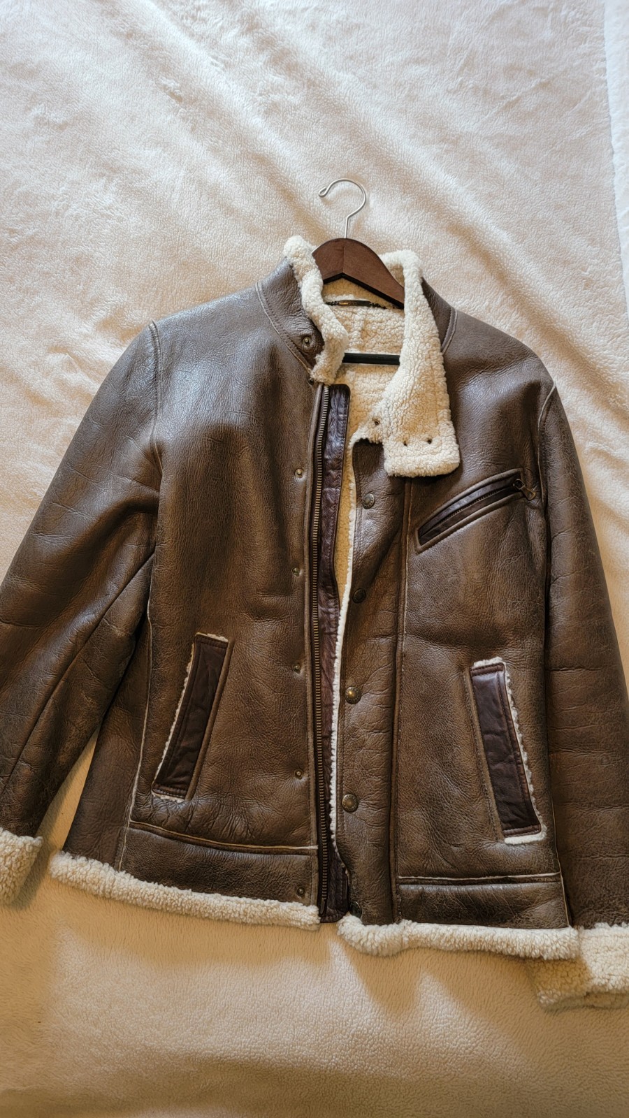 -Winter is coming. -metal tag a little loose from being hung on a hook... the coat is much to heavy for that. - purchased in Paris early 2001-2002... not worn much after over the years because of Arizona. - leather exterior treated to rehydrate just before pictures. - Made in Italy before China. - more pictures upon request. cheers.