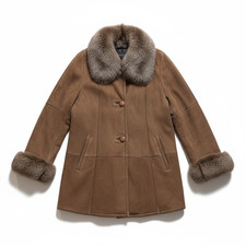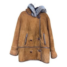 This vintage women's sheepskin coat jacket in size S features a mid-length design with a brown color and fur lining, ideal for casual occasions. The handmade leather outer shell and shearling fabric type add to the natural theme of the coat, perfect for all seasons. Personalization is possible with this unique and stylish overcoat that exudes a timeless appeal.