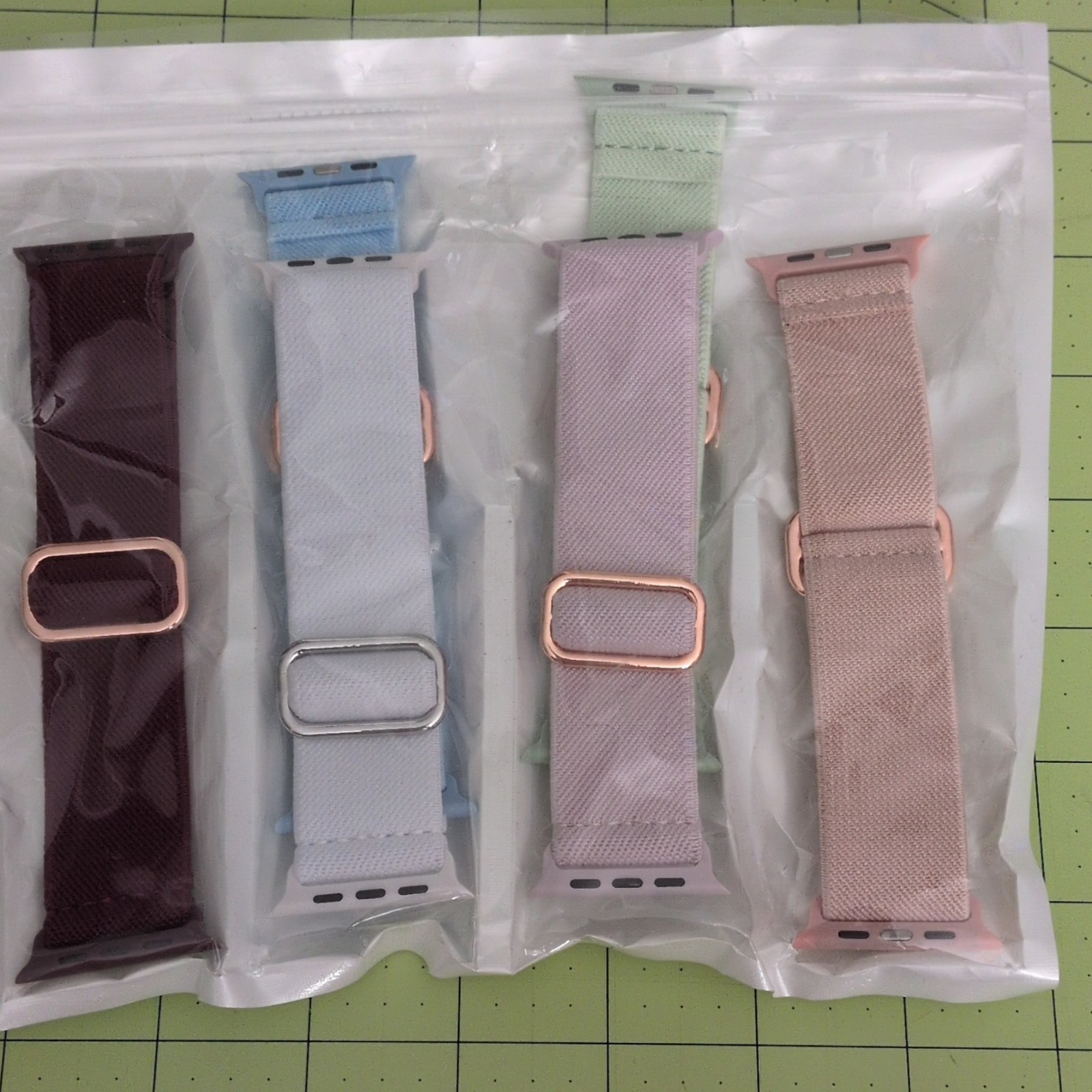 The Multicolor Nylon Strap Set for Apple Watch offers a variety of stylish options in burgundy, blue, lavender, white, light green,and beige. Made from durable nylon material, these straps are designed specifically to fit Apple Watch bands, providing a comfortable and secure hold. The multicolor design adds a fun and trendy touch to any Apple Watch, allowing users to switch out their strap to match their outfit or mood. Whether for everyday wear or special occasions, this strap set is a versatile and fashionable accessory for any Apple Watch owner.
