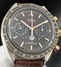 The OMEGA Speedmaster 38MM in Sedna Gold and Brown is a luxurious and sophisticated timepiece designed for men. This wristwatch features a rose gold bezel with a tachymeter scale, a solid dial with baton indexes, and a date indicator. The watch has a co-axial escapement and is chronometer certified, ensuring accurate timekeeping. This OMEGA model comes with a manufacturer warranty until 2029, original box and papers, and a brown leather two-piece strap for a classic and elegant look. Ideal for formal occasions, this watch is a timeless piece that exudes quality and style. Small nick on the 6 o clock bezel underside. Pics as described.
