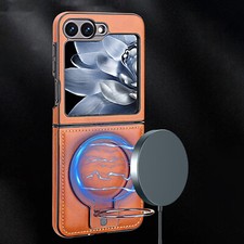 Luxury Leather Mag Safe Ring Stand Shockproof Case for Samsung Z Flip 7 6 5 4 3