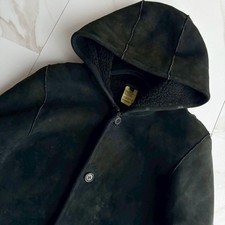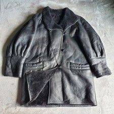 BLACK LEATHER MOUTON Shearling Long Coat Fur Lined Medium Warm Luxury Unused JP