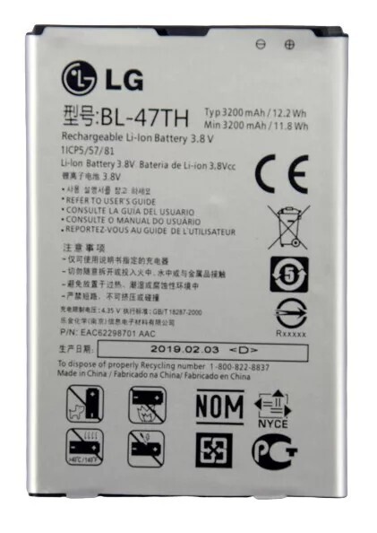LG G Pro 2 OEM Cell Phone Li-ion Battery 3200mAh 3.8V 11.9Wh BL-47TH EAC62298601