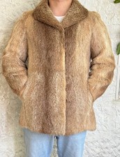 Vintage luxury Genuine Nutria Fur Coat women light Brown Shearling Jacket M