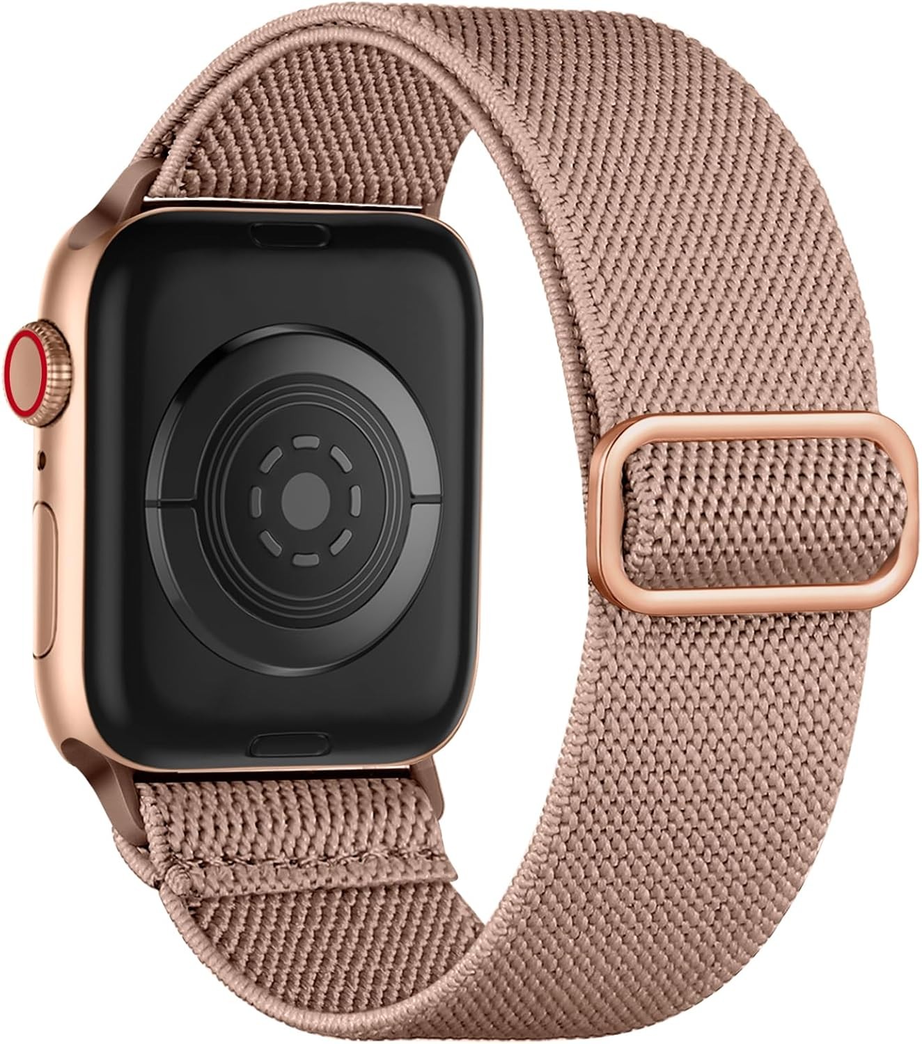 Compatible with all Apple Watch models, including 38mm, 40mm, 41mm, 42mm, 44mm, 45mm, 46mm, and 49mm. Adjustable length with a unique stainless steel slider buckle for a perfect fit. Made of soft elastic nylon material for a comfortable and breathable wearing experience.