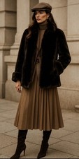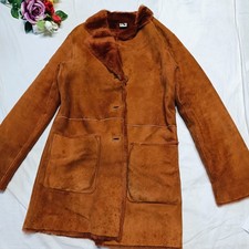Vintage Knee Length Long Sheepskin Lamb skin Mouton Full Length Coat Ladies M 10