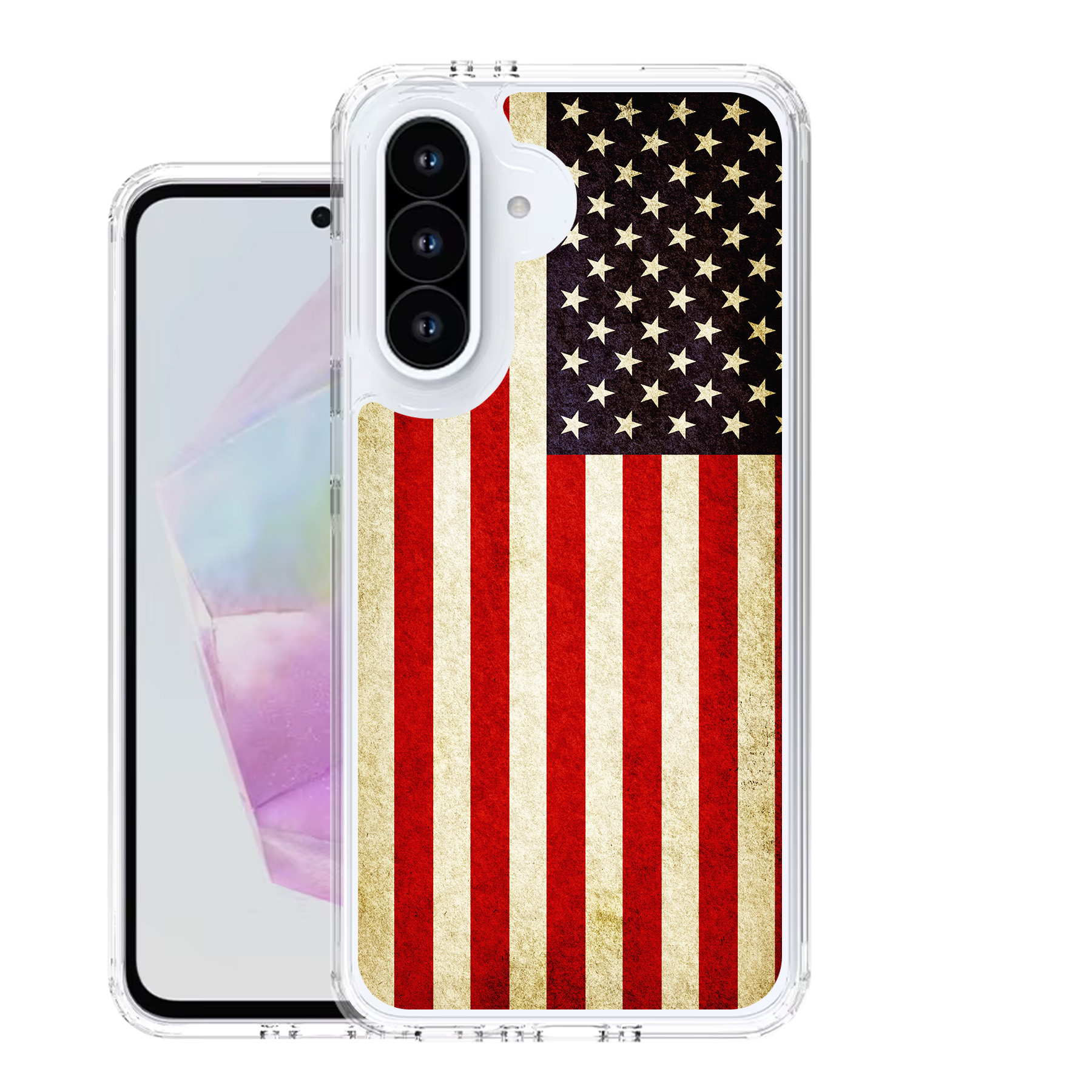 This case features acrystal-clear polycarbonate (PC) back and ashock-absorbent thermoplastic polyurethane (TPU) bumper. The design on the back of the case is not a sticker or a decal; it'sprofessionally printed directly onto the case using advanced UV printing technology.