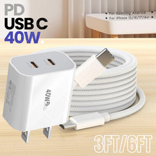 Dual USB-C Fast Charging For iPhone Air 15 16 17 Pro Max 40W Cube PD Type-C Cord