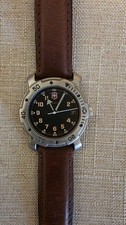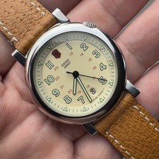 Swiss Army Quartz Wristwatch Brown Leather Band Black Dial Date Indicator w/ Box