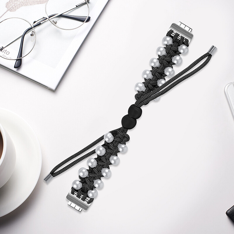 For Fitbit Inspire 3/HR Inspire 2 Women Pearl Nylon Braided Band Wristband Strap