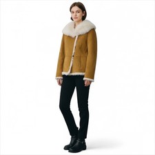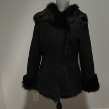 The UGG Karlene Black Toscana Shearling Coat is a luxurious mid-length coat made from 100% sheepskin, perfect for adding a touch of sophistication to any winter outfit. With a casual style and premium UGG Australia brand, this coat is designed for women in size small. The black shearling fabric not only looks stylish but also provides warmth during the colder months, making it a must-have for any winter wardrobe. The coat should be dry cleaned only to maintain its high-quality appearance, making it a versatile and chic addition to any closet. Only worn a couple of times, immaculate. none smoking household.