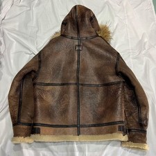 Beige Hooded Mouton Jacket- Size M