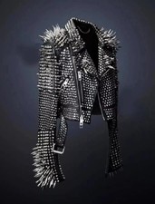Handmade Women's Full Spiked Punk, Silver Long Spike Studded, Stylish Outfit