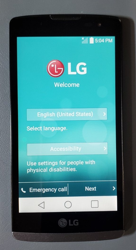 LG Power LGL22C TracFone — Working Smartphone. Network locked to TracFone (CDMA carrier). Display: ~4.5″ FWVGA 480×854. RAM / Storage: ~1 GB RAM, 8 GB internal (microSD expandable).