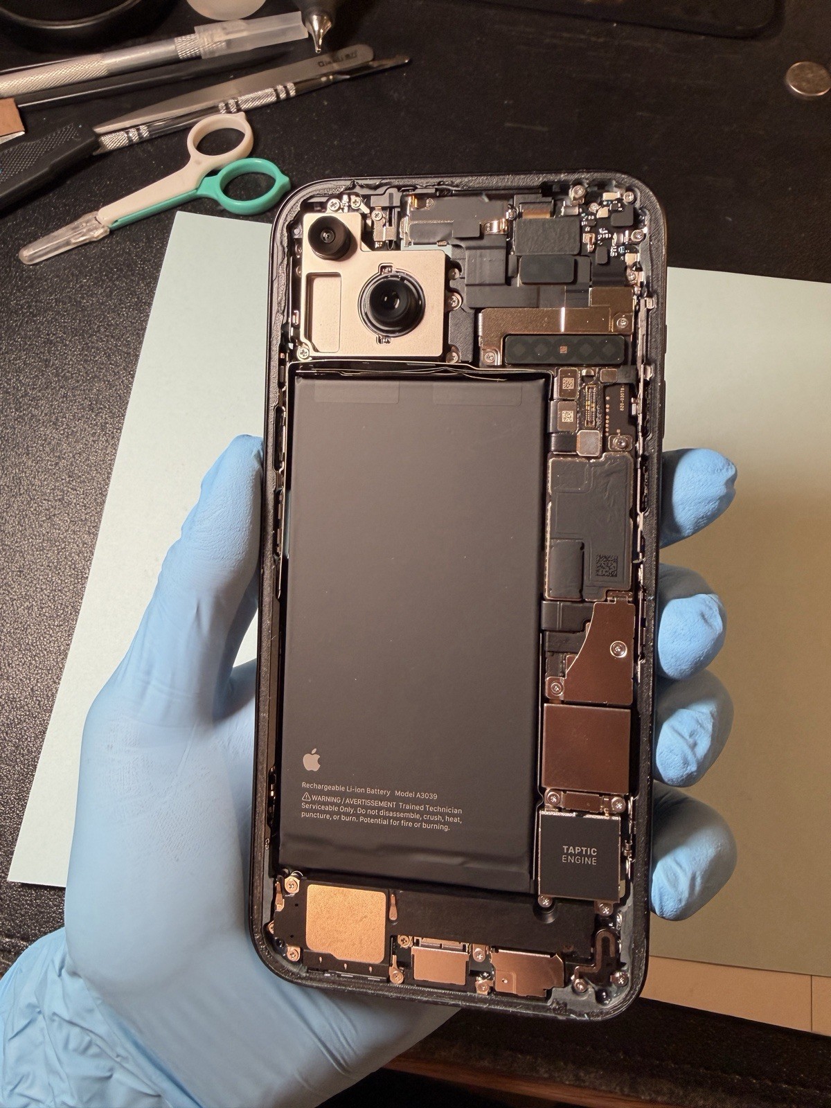 OEM iPhone 15 Plus Black Housing Assembly – Grade A/B Condition. Includes: - Original back camera - Original front camera - Original motherboard (for parts) - Original battery - Housing frame with small parts All components are original OEM parts and have been separated as shown. Condition: The frame is in Grade A/B condition with a slight scuff on the frame, as clearly shown in the photos. Please review all photos carefully before purchasing. Important: If you have any questions, feel free to message before making a purchase. No refunds or returns are offered.