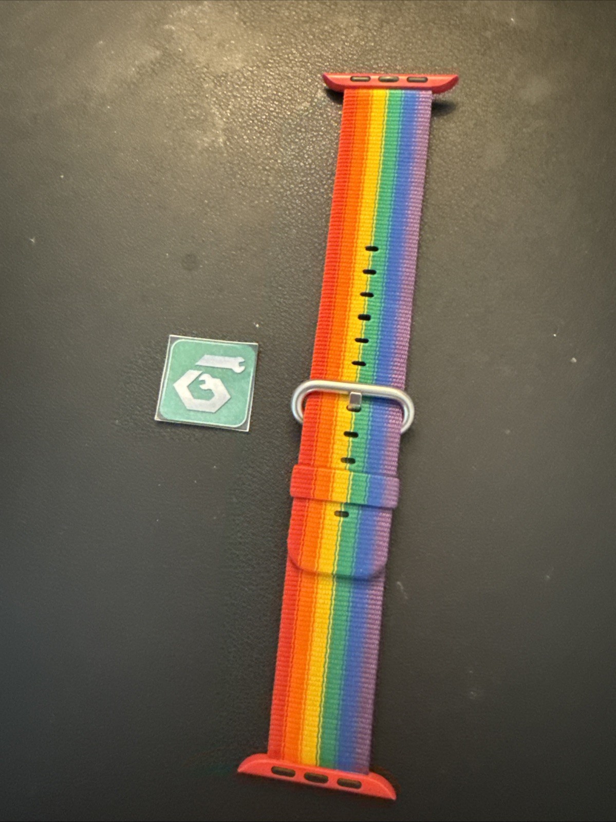 The Apple Watch Woven Nylon Band in Rainbow color is a genuine OEM product designed for Apple Watch models. The multicolor design adds a vibrant and stylish touch to your overall look, making it a fashionable accessory for your tech-savvy lifestyle.