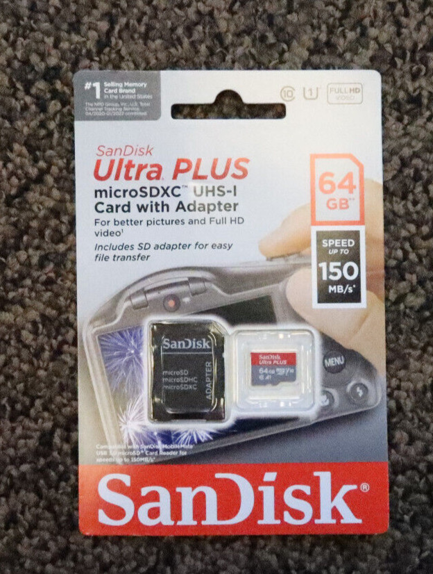 SanDisk ULTRA PLUS 64GB microSDXC Memory Card - Speed up to 150MB/s With Adapter