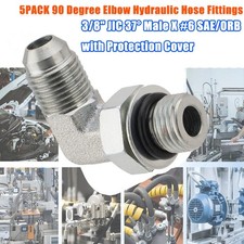 5 Pack 90 Degree Elbow Hydraulic Hose Fittings: 3/8" JIC 37° Male X #6 SAE/ORB