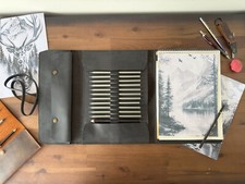 PLENTY STORAGE SPACE - The leather sketchbook cover fits 9”x12” sketchbook or notebook at the right side pocket. And a large pocket to keep markers, erasers, notes, stickers, and a lot of other things for the artist, designer.