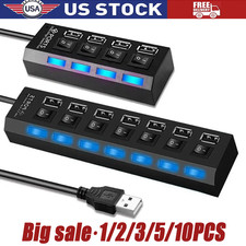 USB Hub 7 Port On/Off Switch High Speed Splitter AC Adapter Cable PC Laptop Lot
