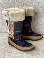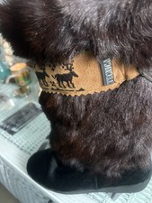 They are in good pre-owned condition. I feel like the are on the narrow side even though they are not marked as a narrow. I had my daughter model these shoes in the last photos. Classic Apres Ski Style.