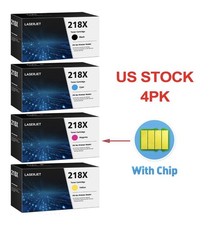 Replacements for HP 218X W2180X W2181X W2182X W2183X are strictly tested with industry quality control processes to perform superb results. Fully inspected and guarantee to work as Original OEM Cartridges and get 5 year quality guarantee. Page Yield: Up to 3,200 pages per Black cartridge, up to 2,500 pages per Color cartridge, at 5% coverage (Letter/A4) Package included: 4PK For HP 218X Toner Cartridge Set(1 Black+ 3 Color) W2180X Black Toner [With Chip] W2181X Cyan Toner [With Chip] W2182X Yellow Toner [With Chip] W2183X Magenta Toner [With Chip] Compatible Models: For HP Color LaserJet Pro 3201dw Printer For HP Color LaserJet Pro MFP 3301cdw Printer For HP Color LaserJet Pro MFP 3301fdw Printer For HP Color Laserjet Pro MFP 3301sdw Printer.