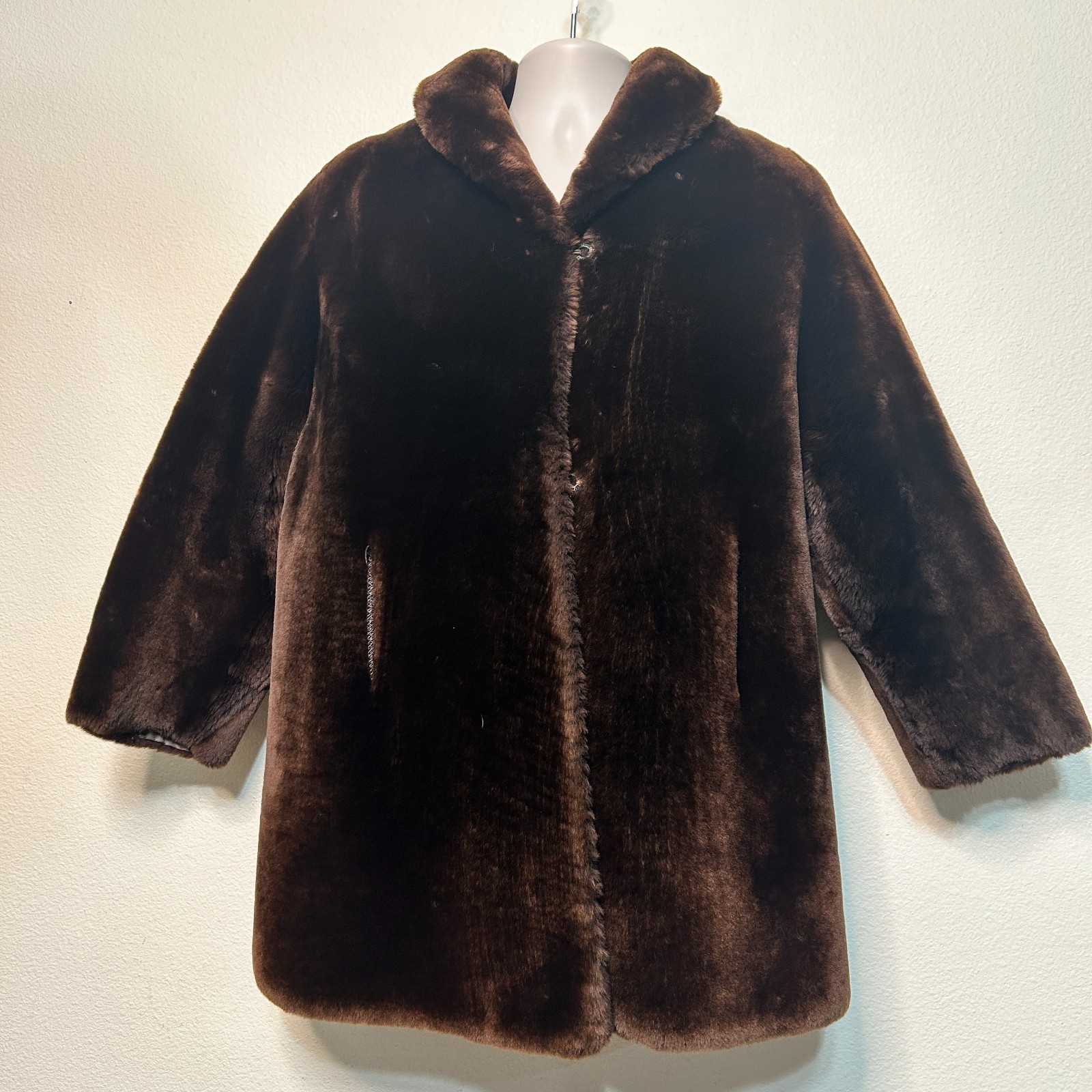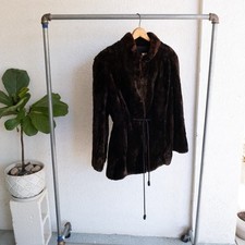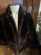 VINTAGE Dark Brown Mouton Sheep Fur Coat Jacket Womens Mob Wife 4524