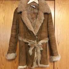 Italian Real Mouton Long Coat Genuine Goat Fur Sheepskin Leather Black Size S/M