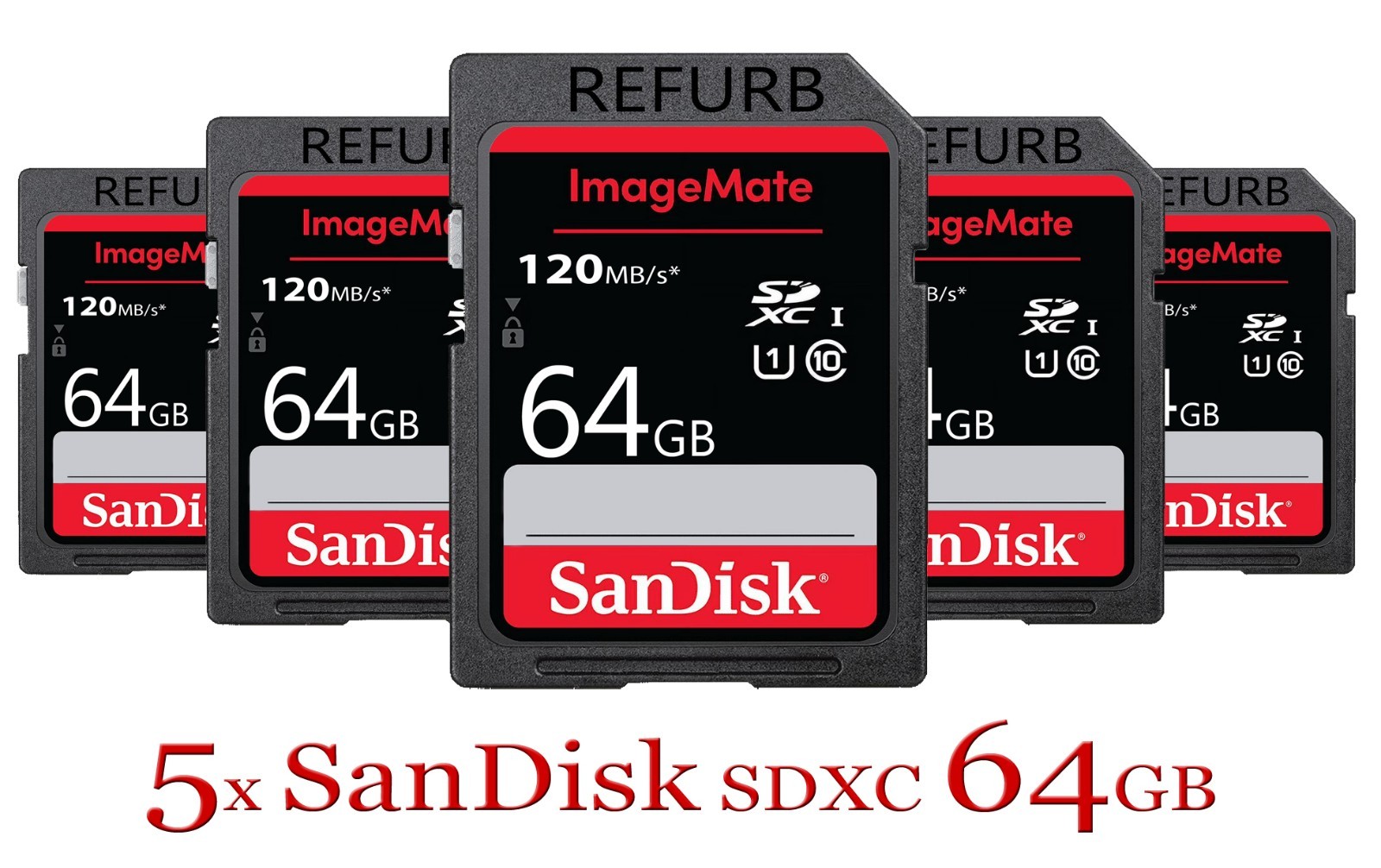 LOT 5x SanDisk SDImageMate SDXC 64GB. SanDisk ImageMate SDXC UHS-I Cards are designed to handle whatever life throws at them. These cards are shockproof, X-ray proof, and waterproof. The SanDisk ImageMate line is for the amateur who wants to shoot like a pro.