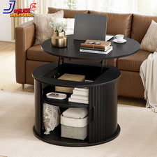 Round Lift Top Coffee Table,Fluted Wood Accent Coffee Table,Hidden Storage..Prod