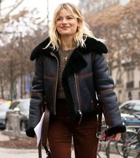Women's B3 Bomber RAF Aviator Shearling Real Leather Jacket Coat – Black Fur